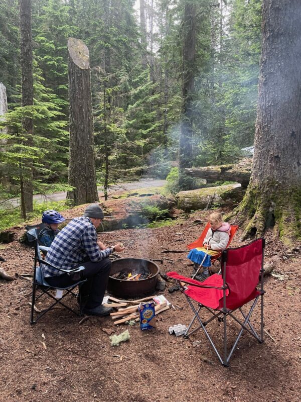 Special for kids: A short walk from the campground is a wide, rocky spot to sit by the river. You could spend hours here wading and exploring. Nearby, family-friendly hikes include the Middle Fork Snoqualmie Trail and Garfield Ledge Trail. The Middle Fork Snoqualmie Trail trailhead is a short walk from the campground, has relatively low elevation gain, and goes on for many miles (Iāve never done the whole 12-mile loop – I always just go for a while and then turn around). The Garfield Ledge Trail trailhead is also a short walk from the campground and includes elevation gain. Our 4-year-olds were able to complete the nearly two-mile hike. Be aware that the viewpoint at the top of the hike is steep, so you must watch your little ones closely.