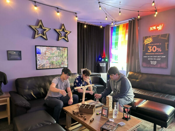 Puzzlebreak’s lounge room offers games to warm up your escape room skills. (Image: Tiffany Doerr Guerzon)