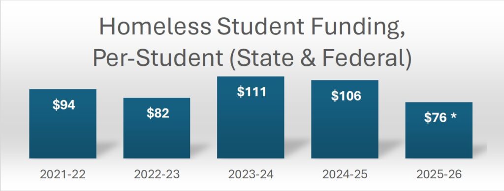 With funding cuts and increasing homelessness, the statewide average per-student allocation for homeless students has dropped consistently over the past several years.