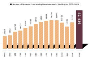 Outside of the years of the pandemic, the number of Washington students experiencing homelessness has seen steady increases since the Office of the Superintendent of Public Instruction began monitoring the number annually.[1]