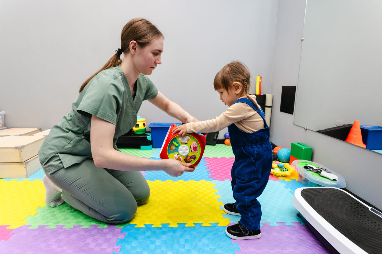 Physical therapist assisting baby with birth trauma in coordination exercise (Image: iStock.com)