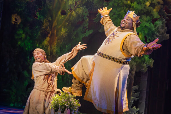 The second act is far easier to settle into, given the first act’s chaotic preparation. Arthur and Patsy must find a shrubbery for the barbaric Knights Who Say Ni, leading to the production’s most well-known number “Always Look on the Bright Side of Life.” When the group is then forced to put on a Broadway musical to appease the creatures, “You Won’t Succeed on Broadway” laments the necessity that they find Jewish people in order to fulfill the tall order, an inside joke for SPAMALOT-admirers that doesn’t quite land for those of us new to the musical.