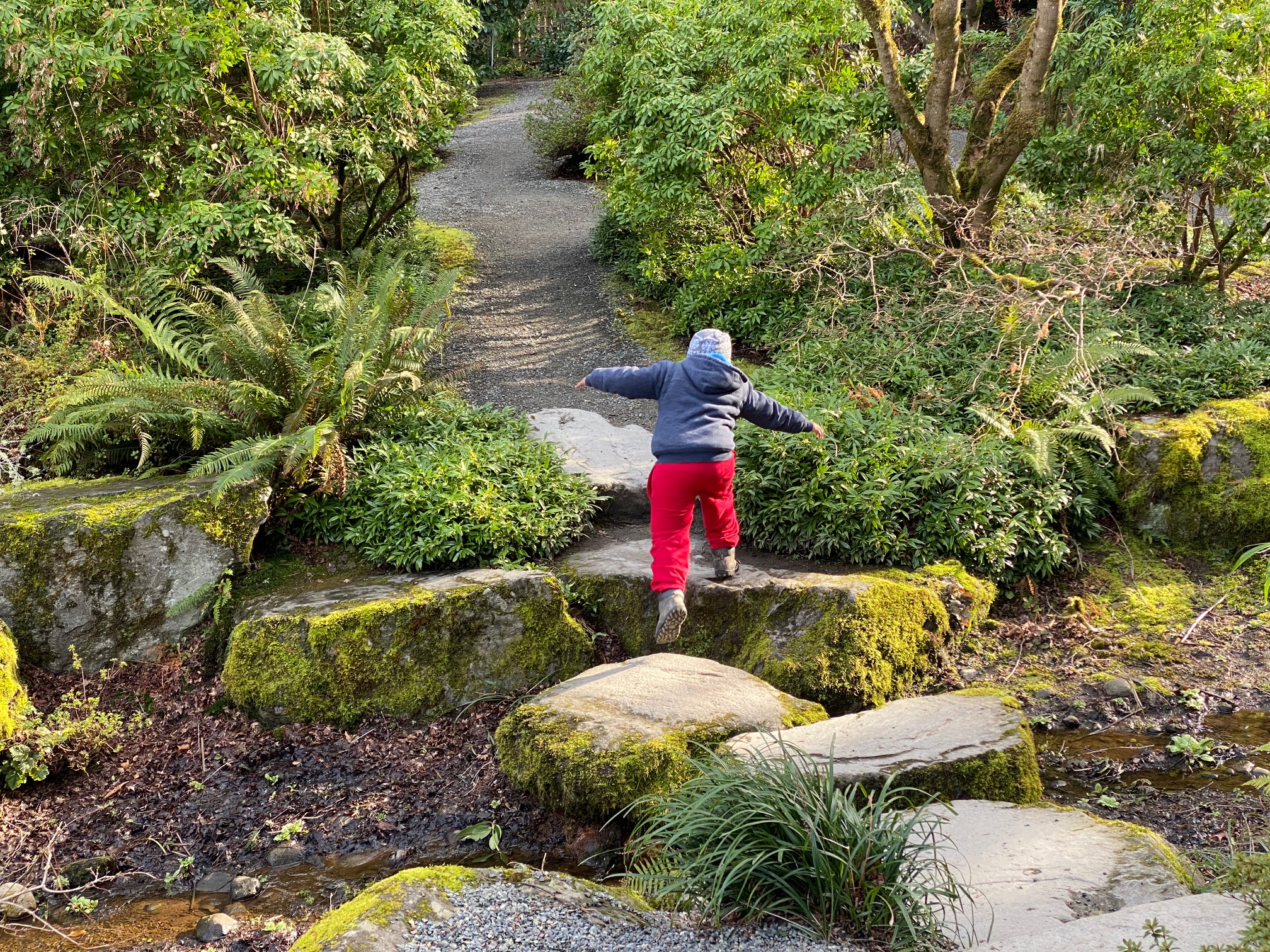 Hopping over to the other side in the Japanese Garden.
