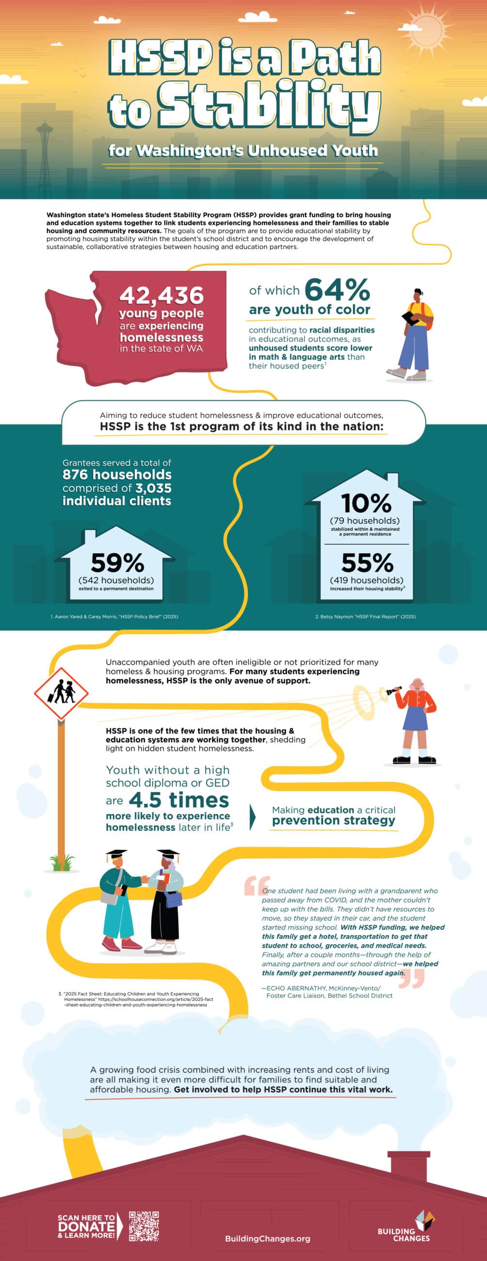 Now more than ever, we need to invest in what works. HSSeP’s approach—linking housing stability and academic achievement—has delivered results since the pandemic. For a child to learn, they must first feel secure in where they will sleep each night. In 2024, HSSeP strengthened the lives of more than 13,000 people by providing housing stability and increasing access to learning. State budget cuts in 2025 reduced funding so significantly that the number of people supported through HSSeP will be less than a third of that for the 25-26 school year. It is clear that restoring this vital funding is a critical step towards supporting our most vulnerable students.