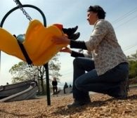 Community A Swing for All Children Victor Leeman throws back his head, letting out a gleeful squeal as he flies from